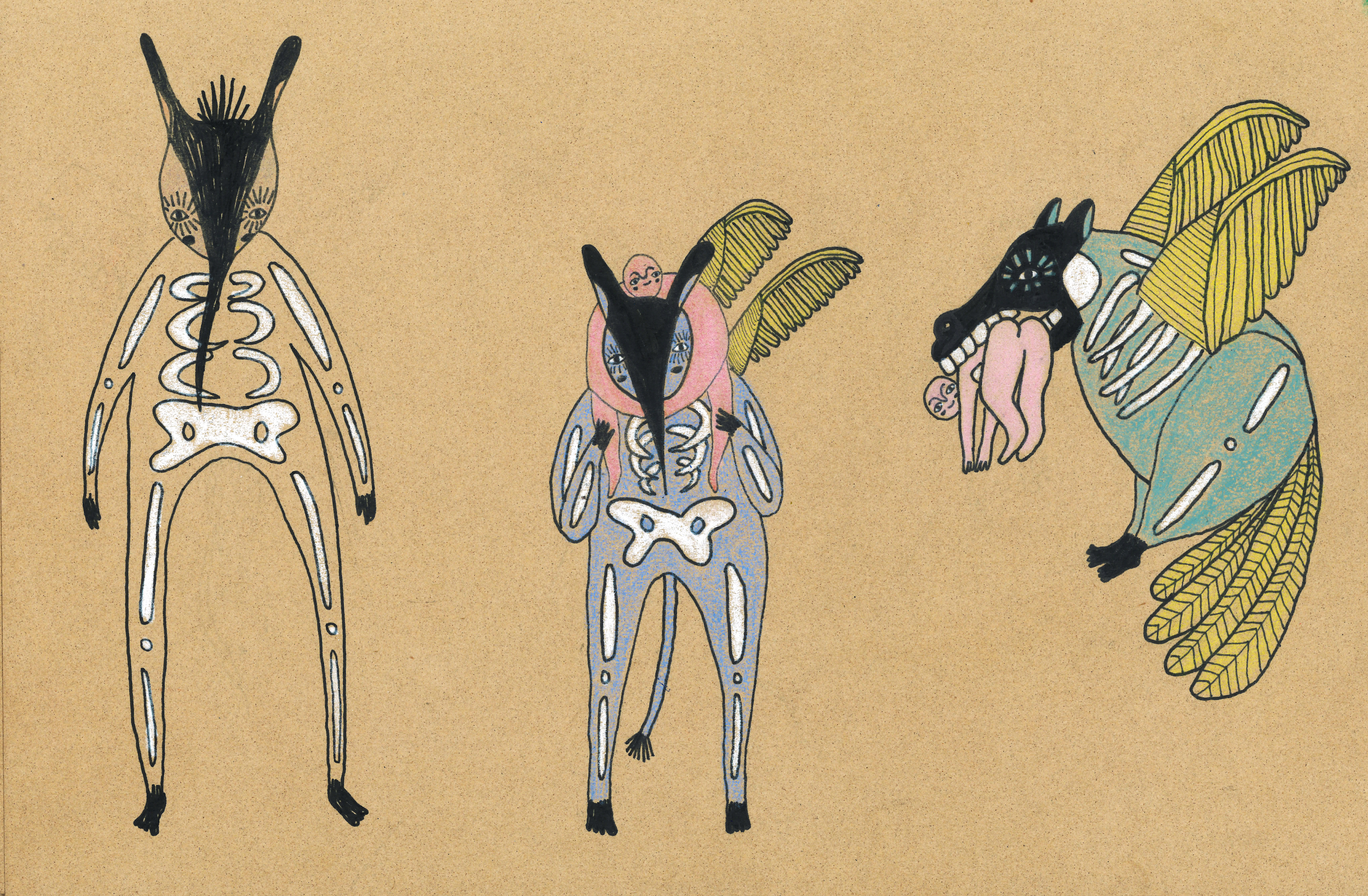 This is why I thought it would be interesting to explore the concepts of cultural juxtaposition through these stories, which is why I thought of creating a new Scottish-Mexican psychopomp, in the form of an alebrije.